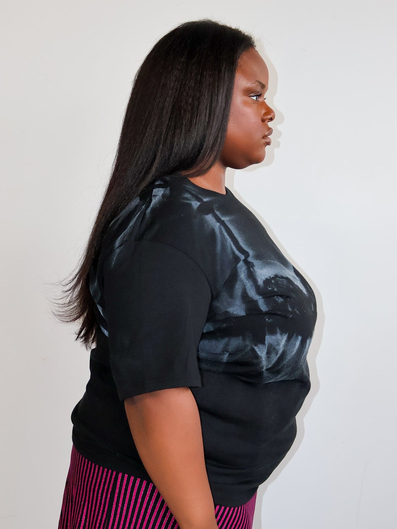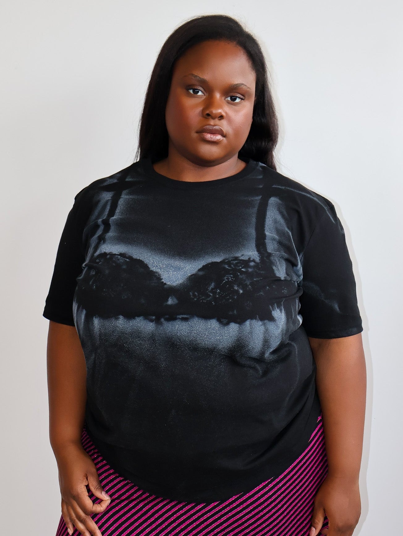 We worked with Kenza to expand her size range exclusively for Berriez. The T-shirt is printed by hand with spraypaint using a vintage bra. This technique makes every print unique.