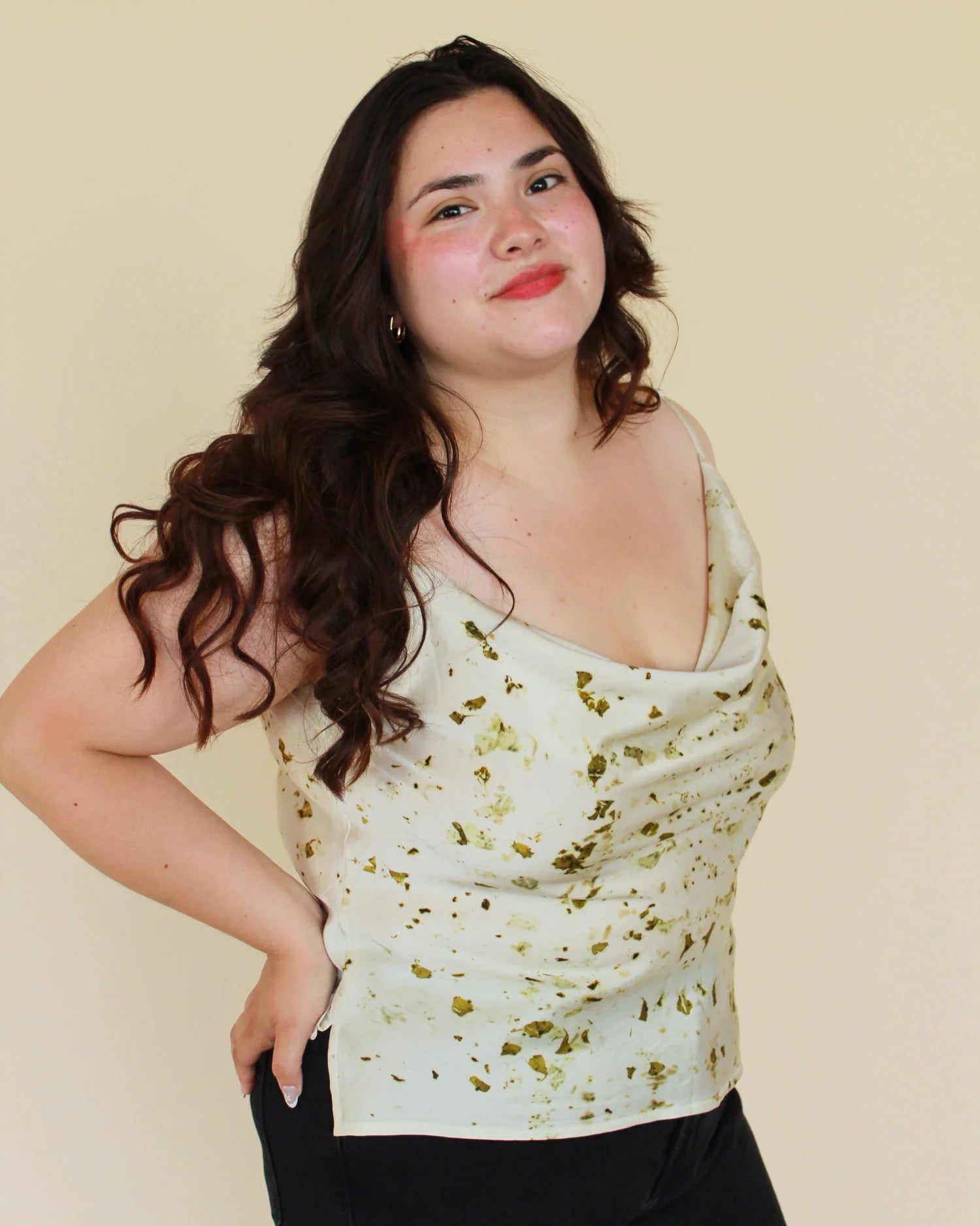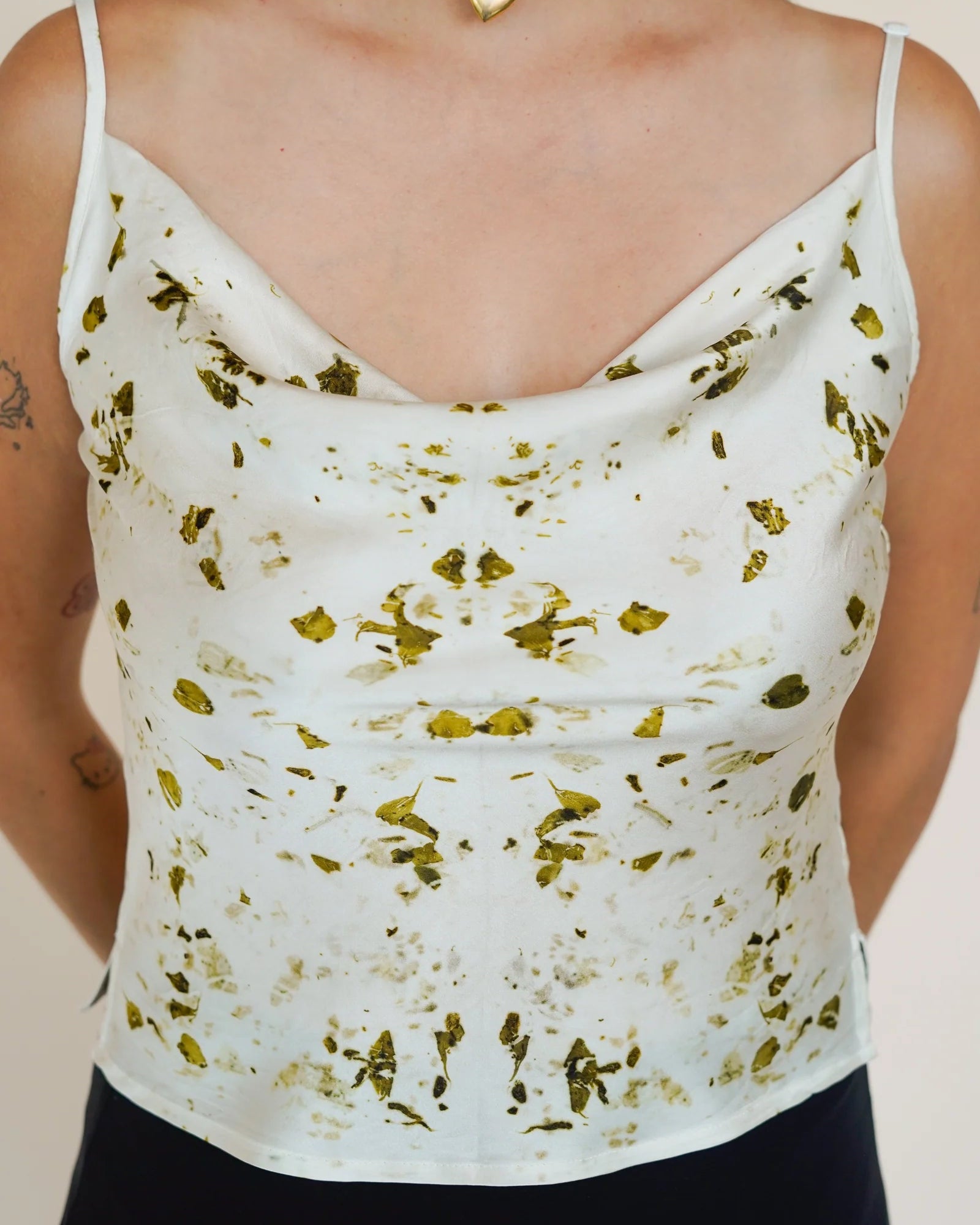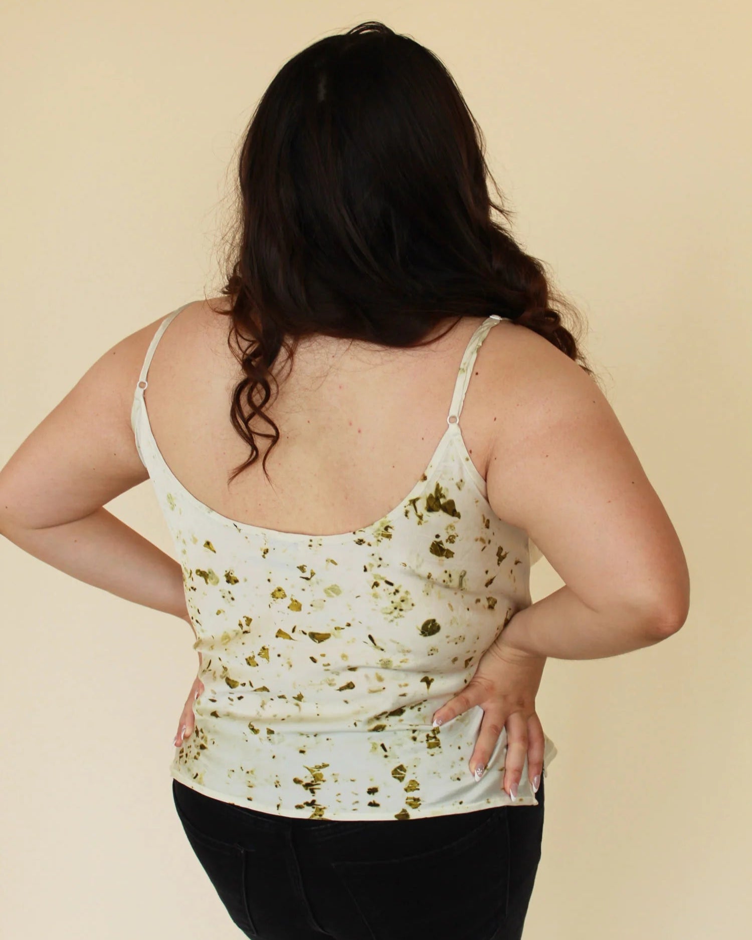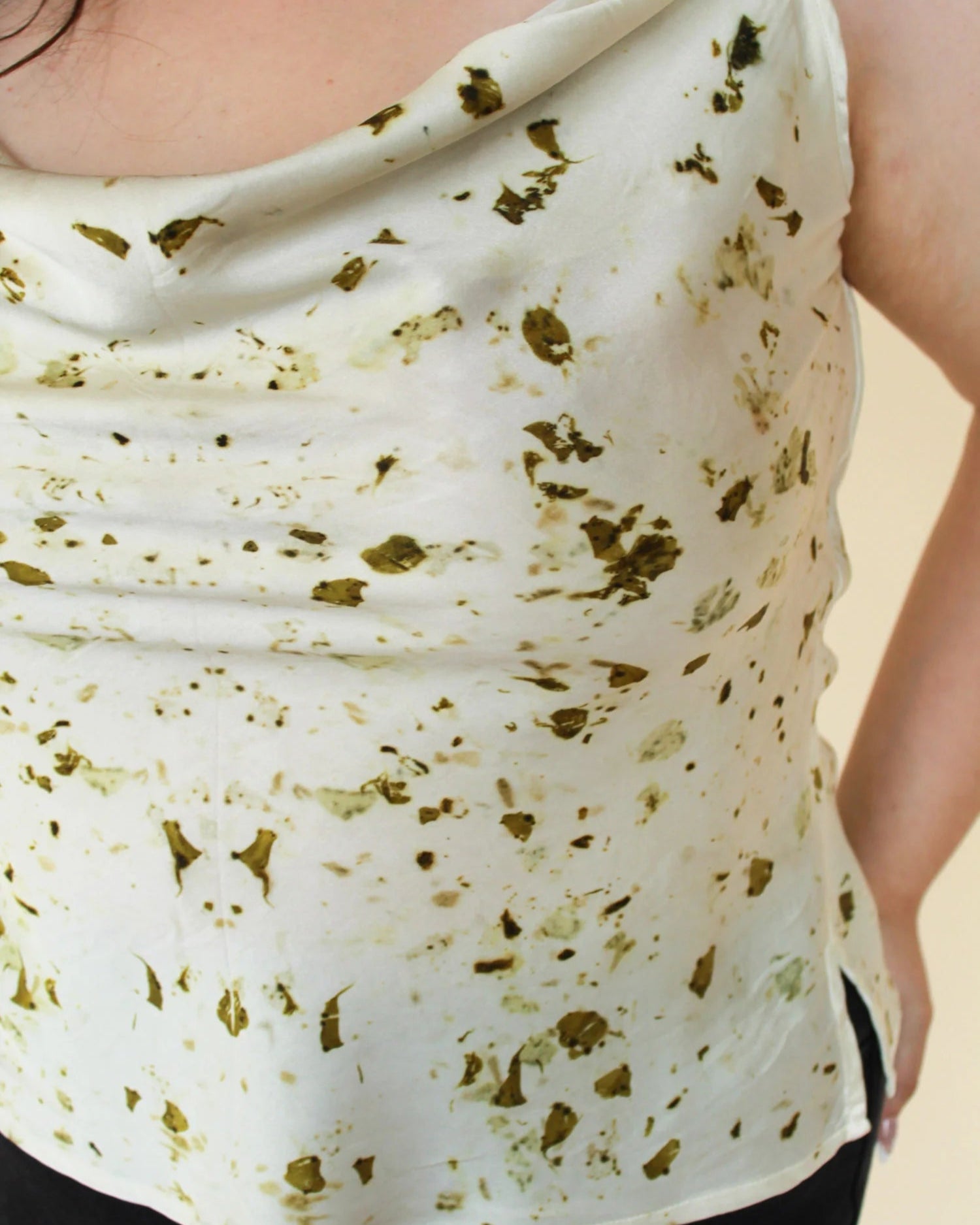 This 100% silk tank top by Laila Textiles is hand-dyed with flowers from her garden. Due to the nature of natural dye, each item & its color/ markings will vary slightly. This creates an 100% unique item. We love the variety that comes from plant dyes and believe this makes it that much more special.