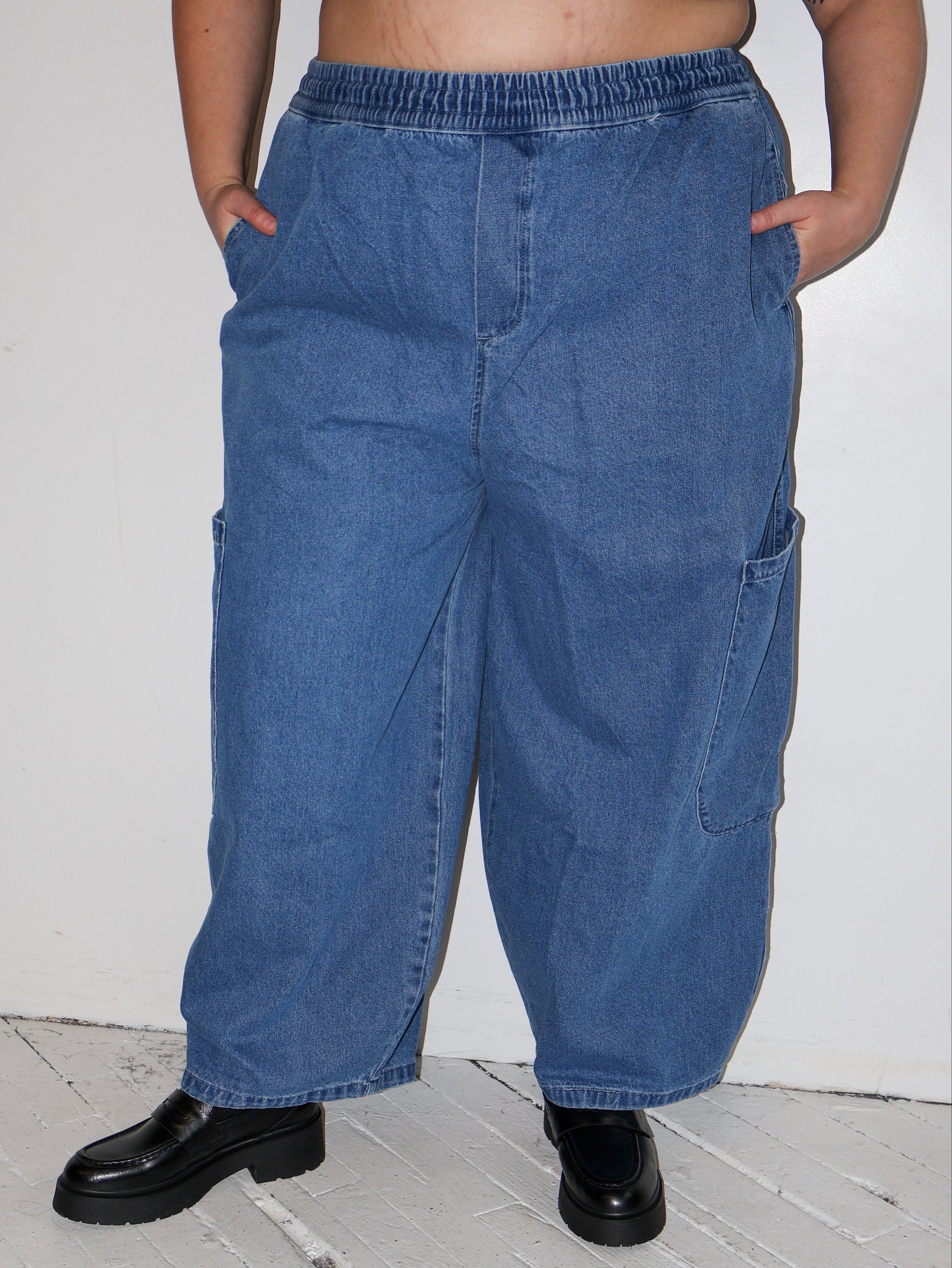 Cropped cookin' pants with 5 big pockets. Elastic waist + drawstring. Made in LA by Meals.