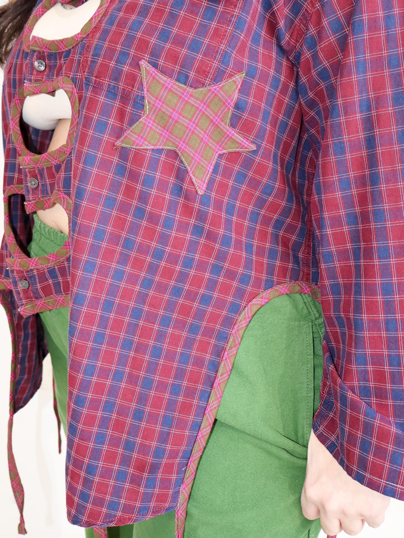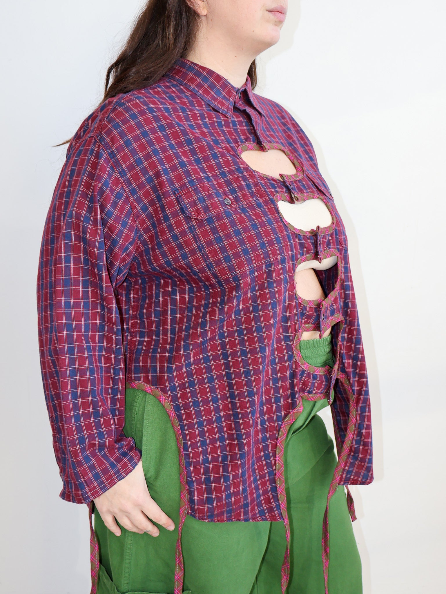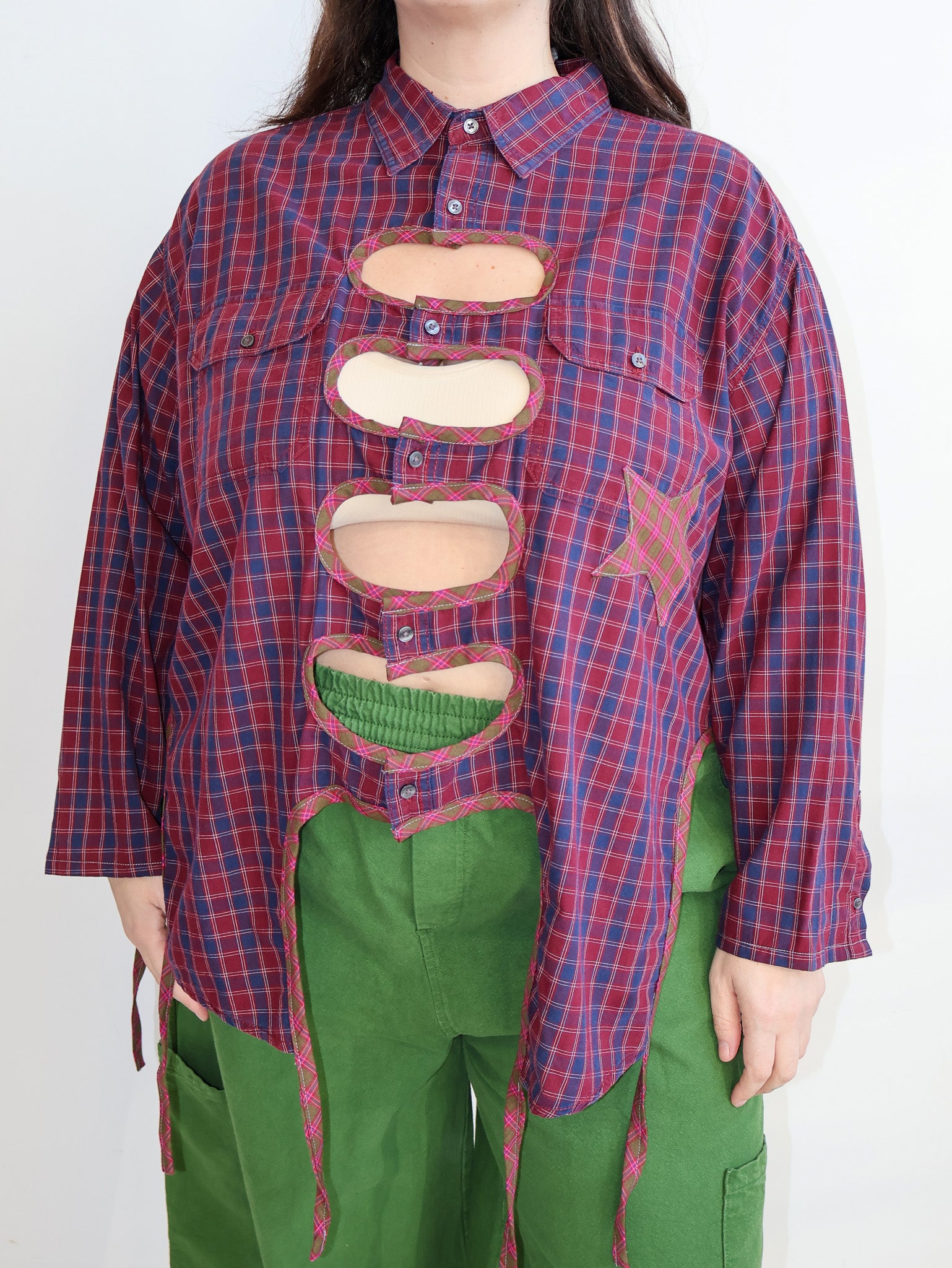 Ella, a sustainable textile designer based in Los Angeles, has reimagined vintage button-downs with stars, diamonds, and cool cut outs. Her brand, Tiberi, is named after her late grandmother, who was also a talented seamstress and designer, much like Ella.