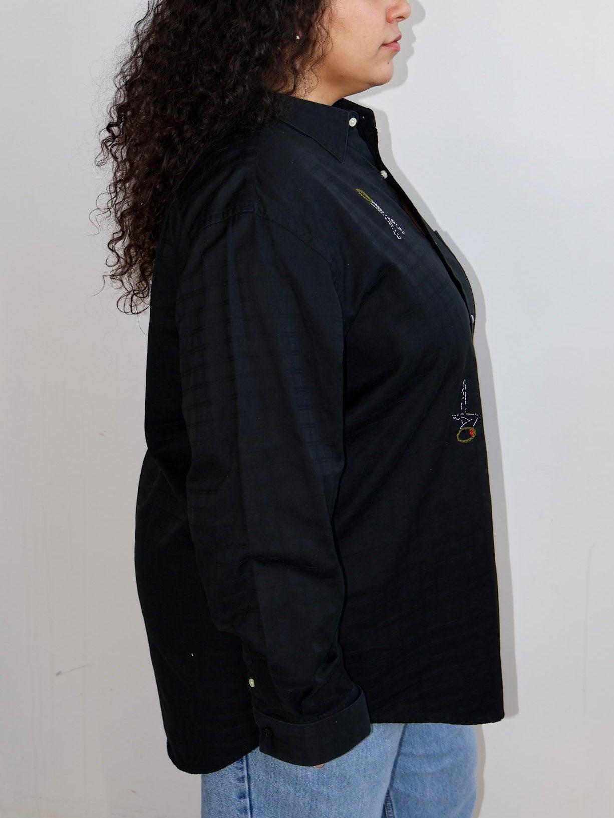 Hand-embroidered on a vintage button down.