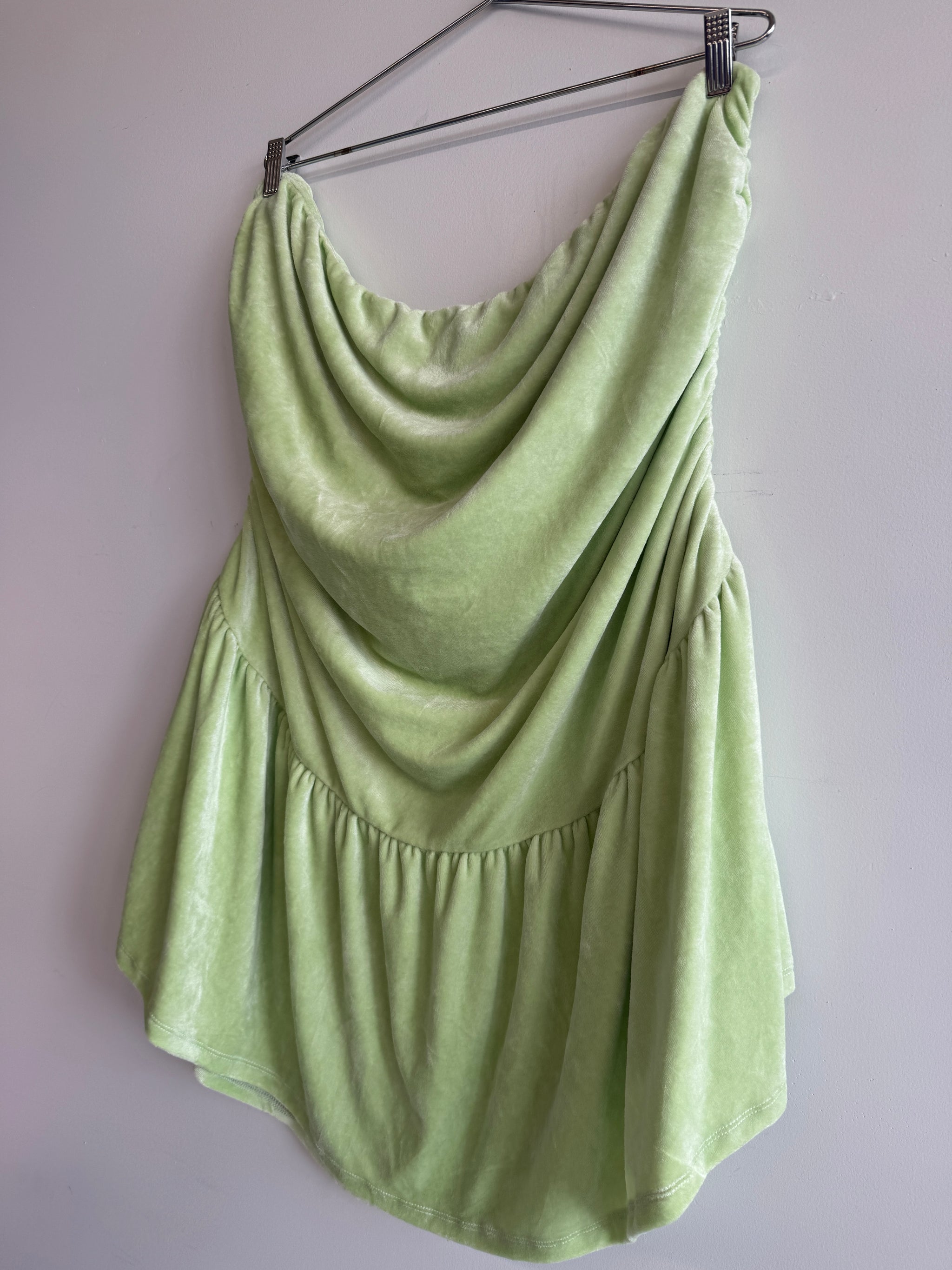Dead stock velour follow your bodies unique curves in the softest stretchy jersey. Drop waisted with a built in double layer for bust support and smoothing, gently gathered side seams, slight curve to the hips to accentuate your cute belly. Everyone has tried it has been amazed by the firmness of the elastic holding it up, expressing relief at the security. This style is super stretchy and super comfy.
