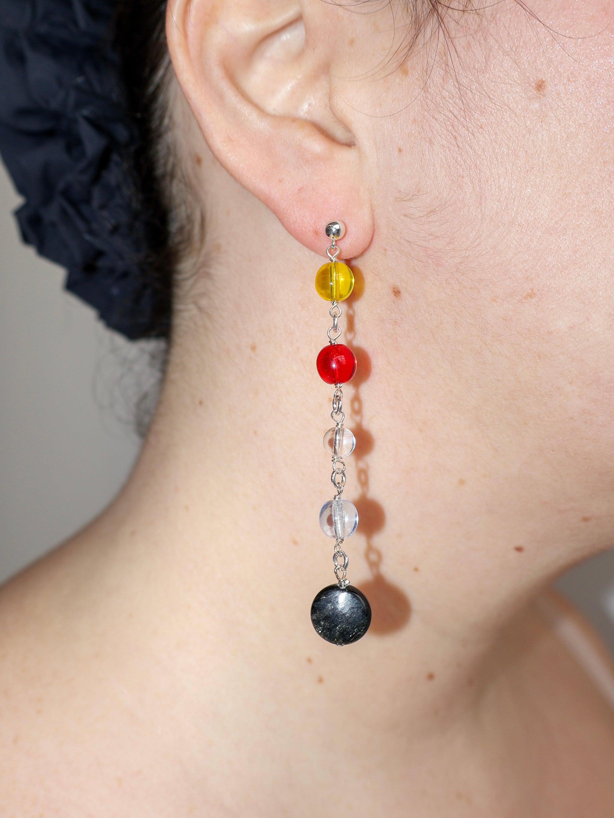 Materials: Mix of clear quartz, glass, and agate beads. Sterling silver hardware.