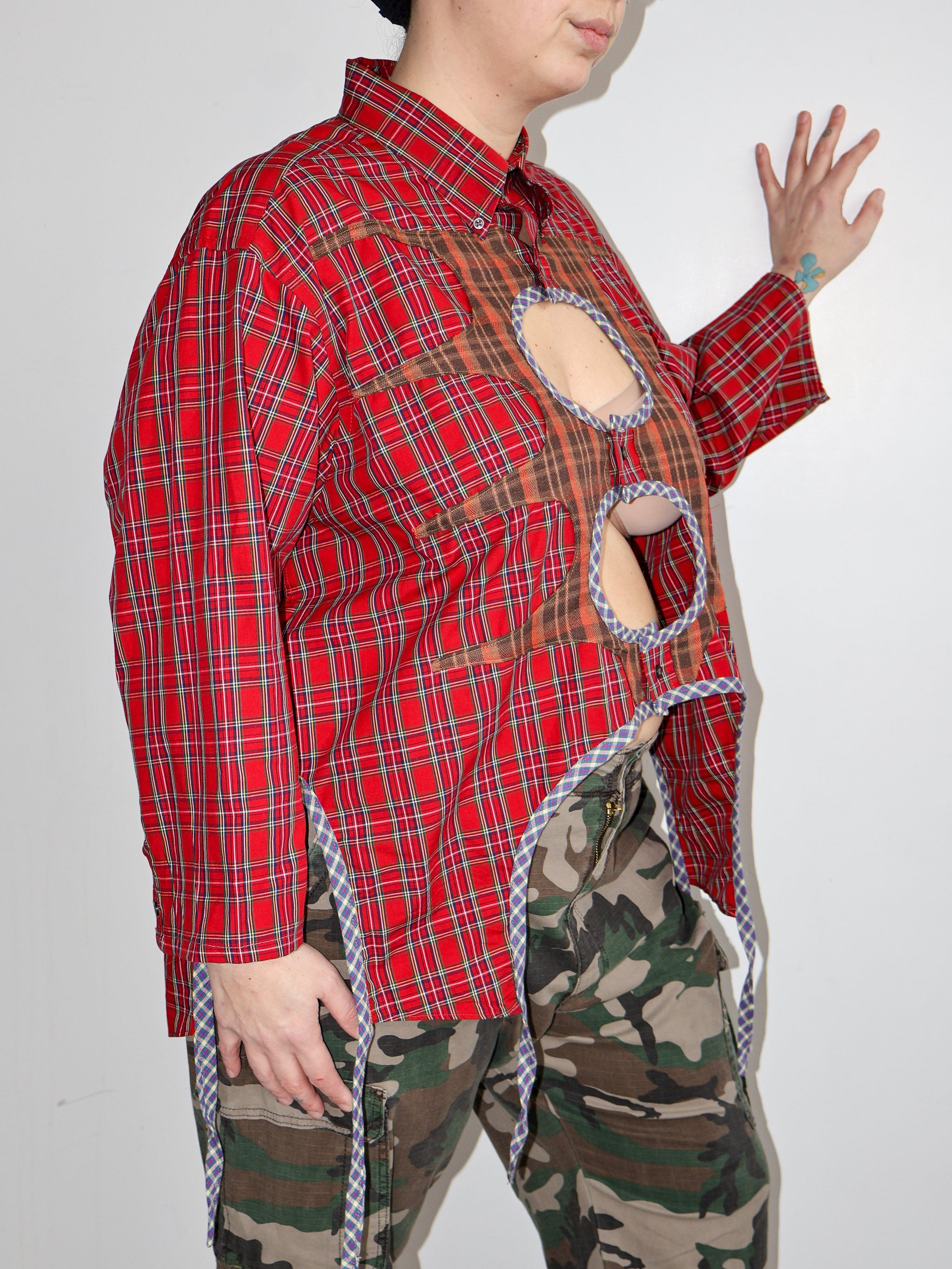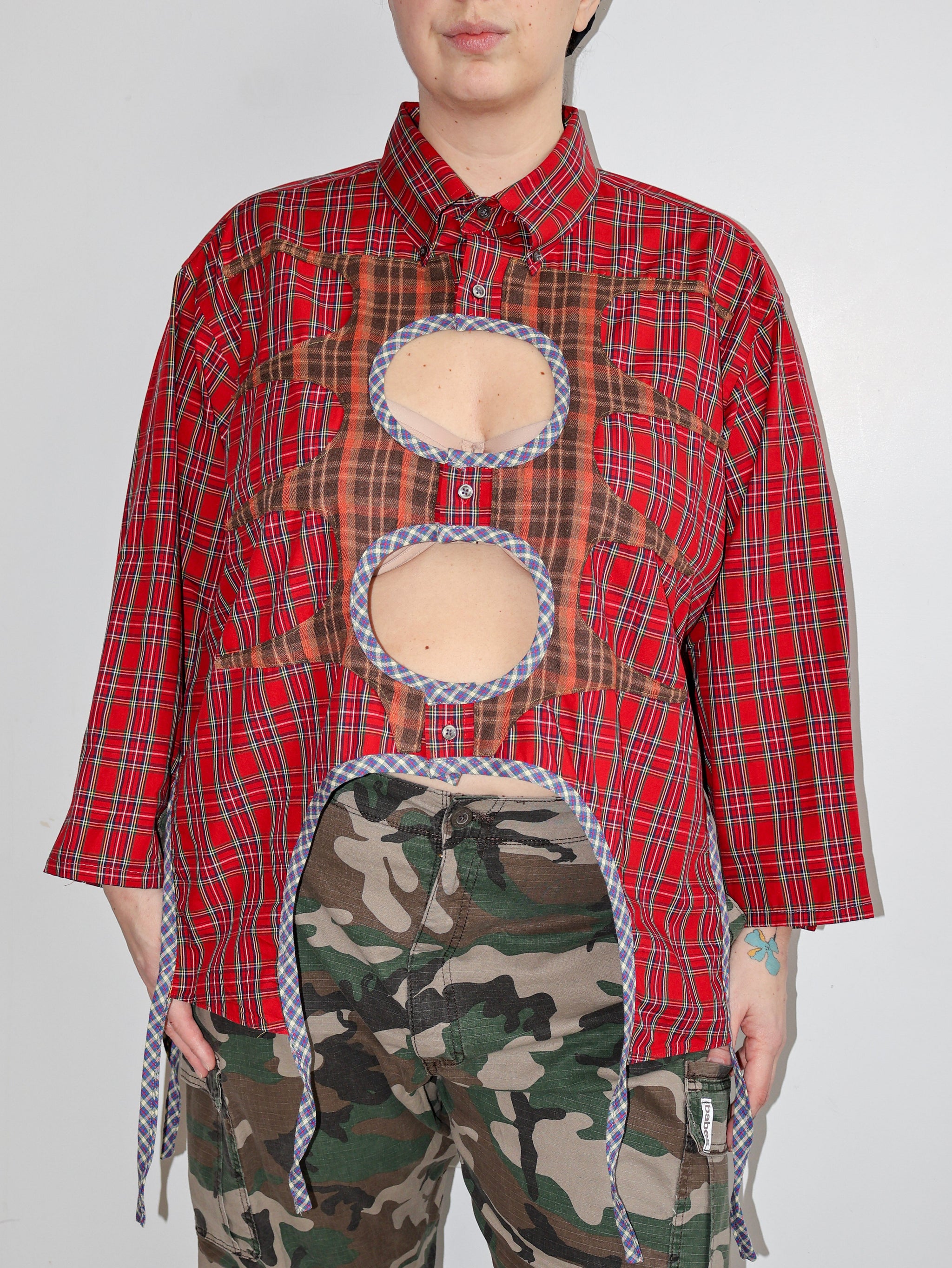 Ella, a sustainable textile designer based in Los Angeles, has reimagined vintage button-downs with stars, diamonds, and cool cut outs. Her brand, Tiberi, is named after her late grandmother, who was also a talented seamstress and designer, much like Ella.