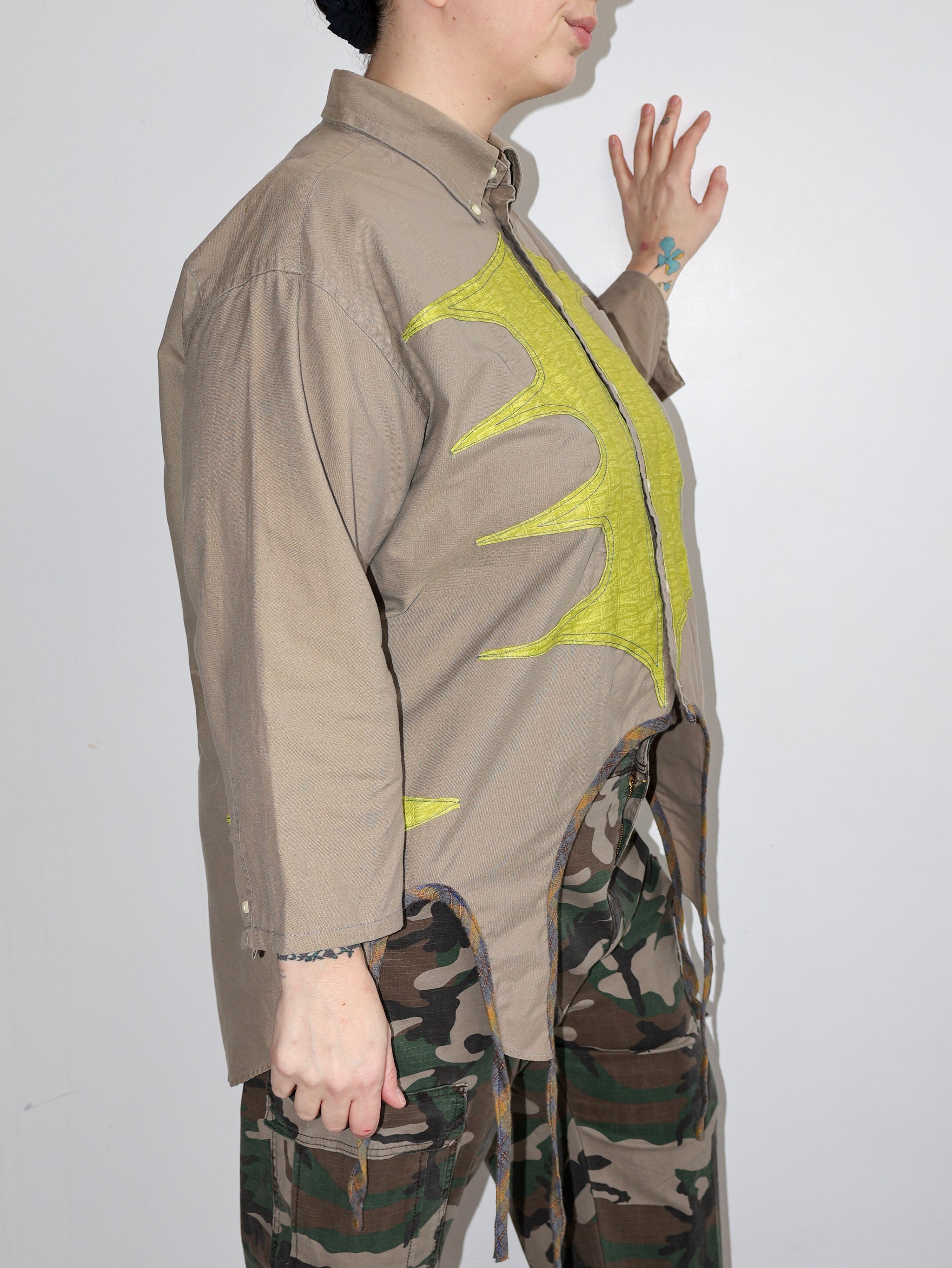Ella, a sustainable textile designer based in Los Angeles, has reimagined vintage button-downs with stars, diamonds, and cool cut outs. Her brand, Tiberi, is named after her late grandmother, who was also a talented seamstress and designer, much like Ella.