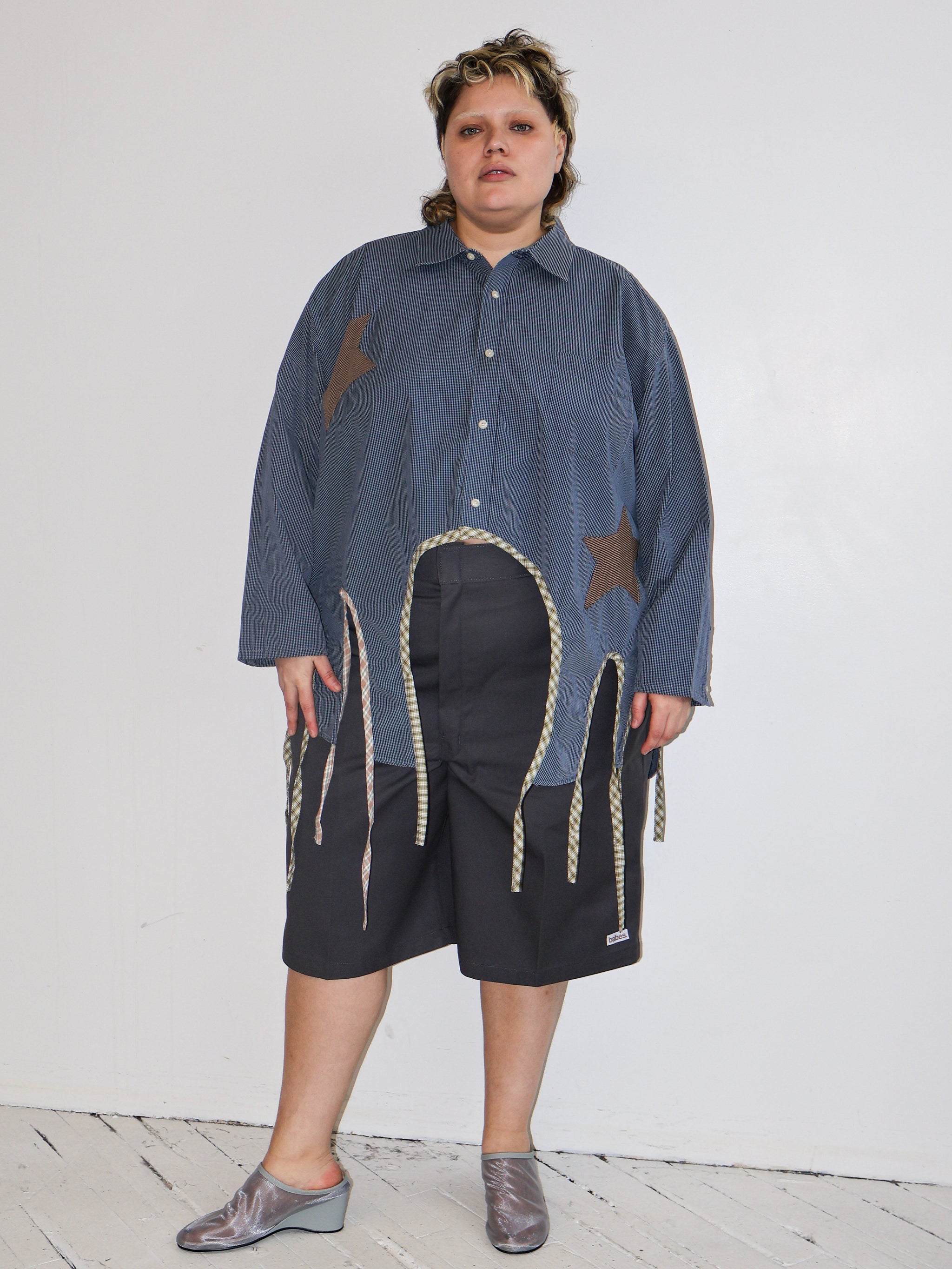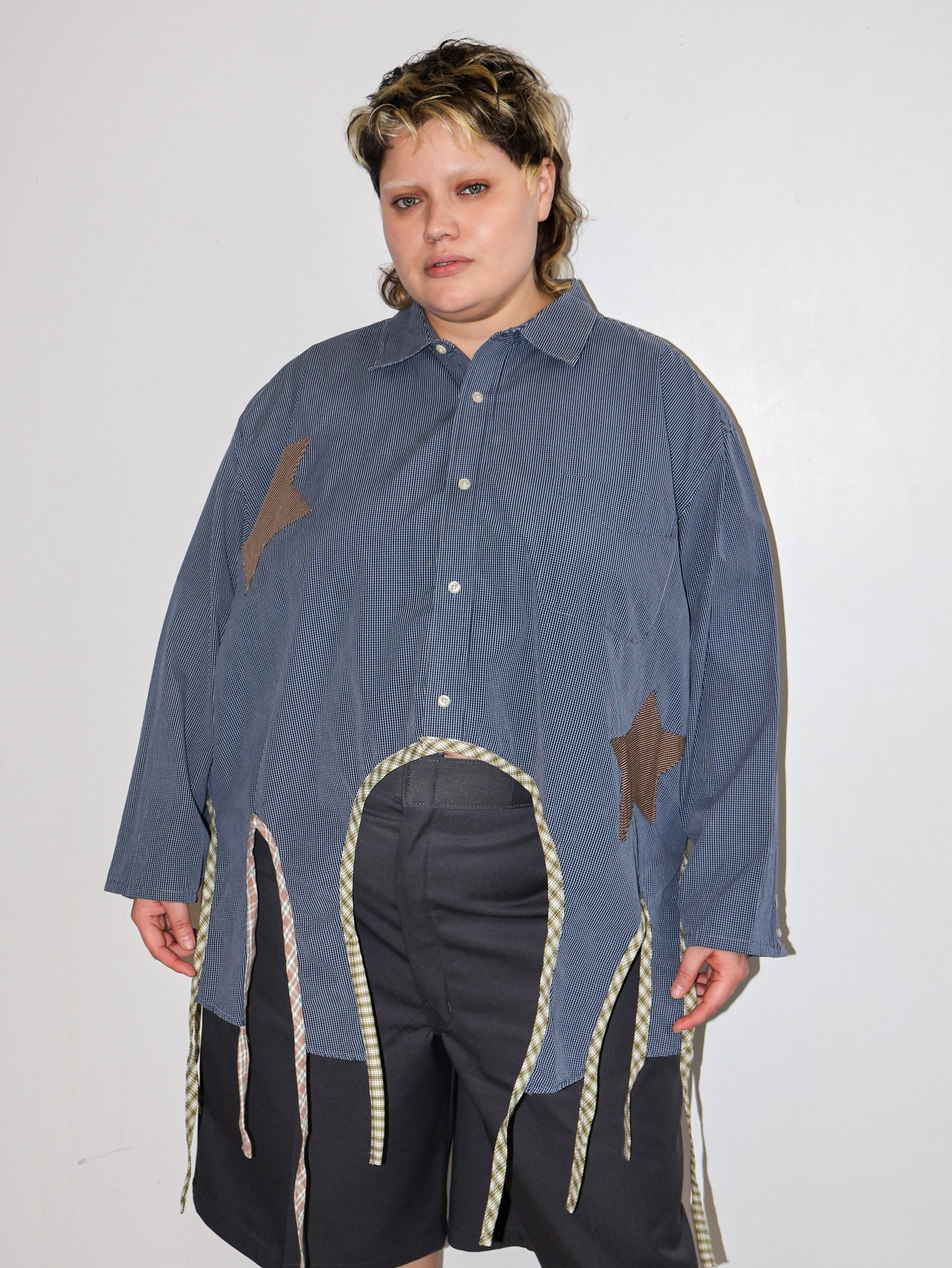 Ella, a sustainable textile designer based in Los Angeles, has reimagined vintage button-downs with stars, diamonds, and cool cut outs. Her brand, Tiberi, is named after her late grandmother, who was also a talented seamstress and designer, much like Ella.